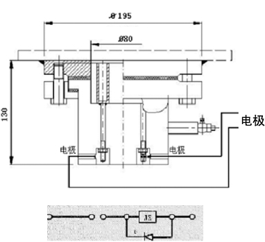 1、電極裝置安裝于油箱底部,開(kāi)口尺寸φ80,信號(hào)裝置安裝在便于觀察使用地方,二者間宜用屏蔽電纜連接并在一點(diǎn)接地。裝于油箱底板的電極裝置有4個(gè)電極,可分別并聯(lián)使用其中兩個(gè)。